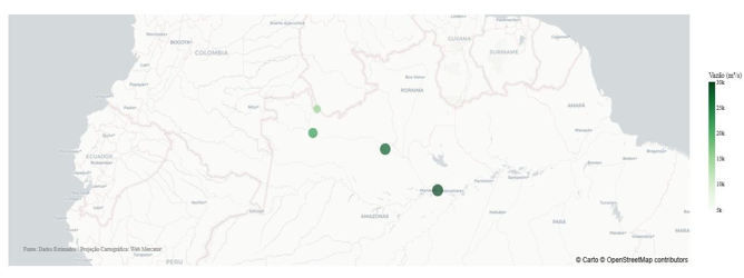 Figura 1: Distribuição de Vazão Média no Percurso do Rio Negro.
